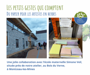 Depuis la rentrée, nous avons mis en place une collaboration avec l’école Simone Veil, proche de notre atelier, au Bois du Verne à Montceau-les-Mines.